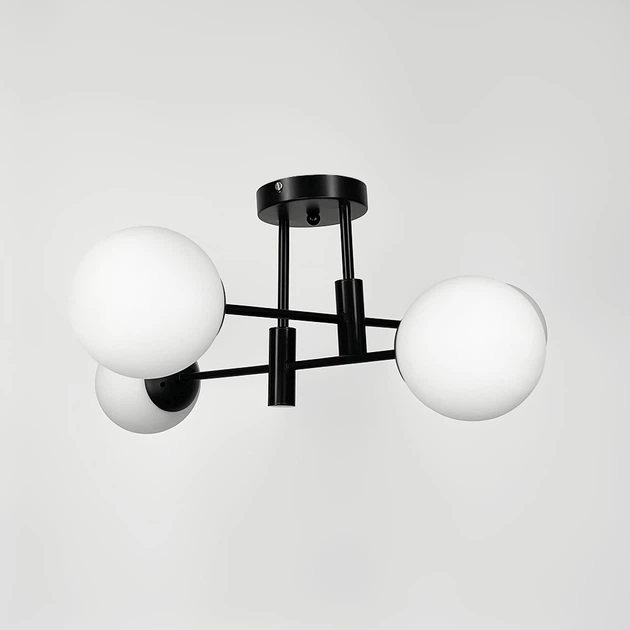 Стельова люстра в чорному корпусі на 4 білих плафони 60 см | Line F | Арт. 51797/4 BK+BK+WT