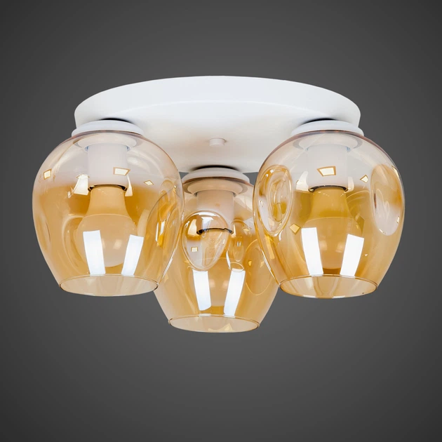 Біла стельова люстра з трьома бурштиновими плафонами (56-XPR0231F-3 WH+BR (300))