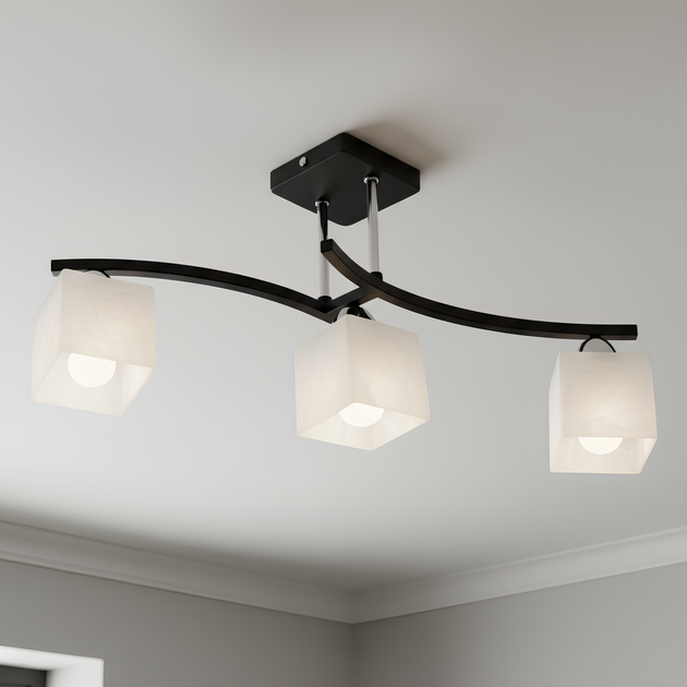 Люстра стельова Sirius B A1507/3 із трьома скляними матовими плафонами під лампи Е27 чорно-хромовий каркас