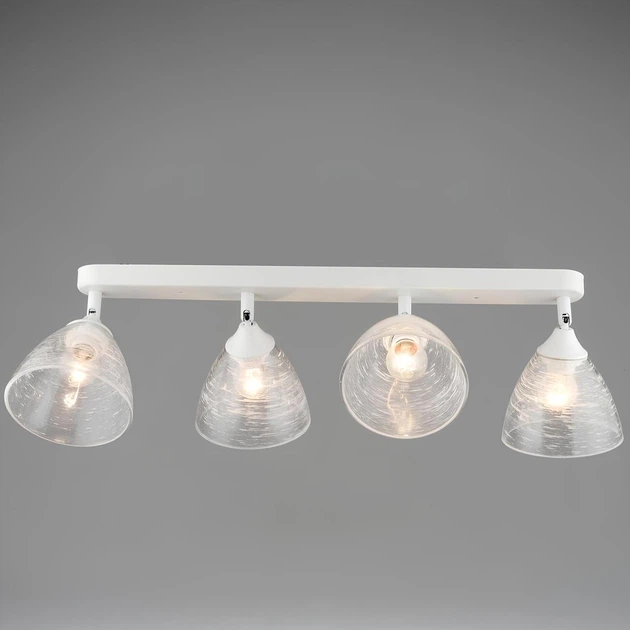 Стельовий світильник Valeso B K2289/4 WT з 4 прозорими поворотними плафонами зі скла під лампи Е27 білий каркас