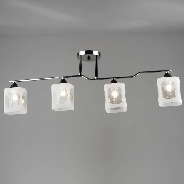 Люстра стельова Valeso B K2284/4 CH+BK із чотирма скляними плафонами під лампи E27 хромово-чорний корпус