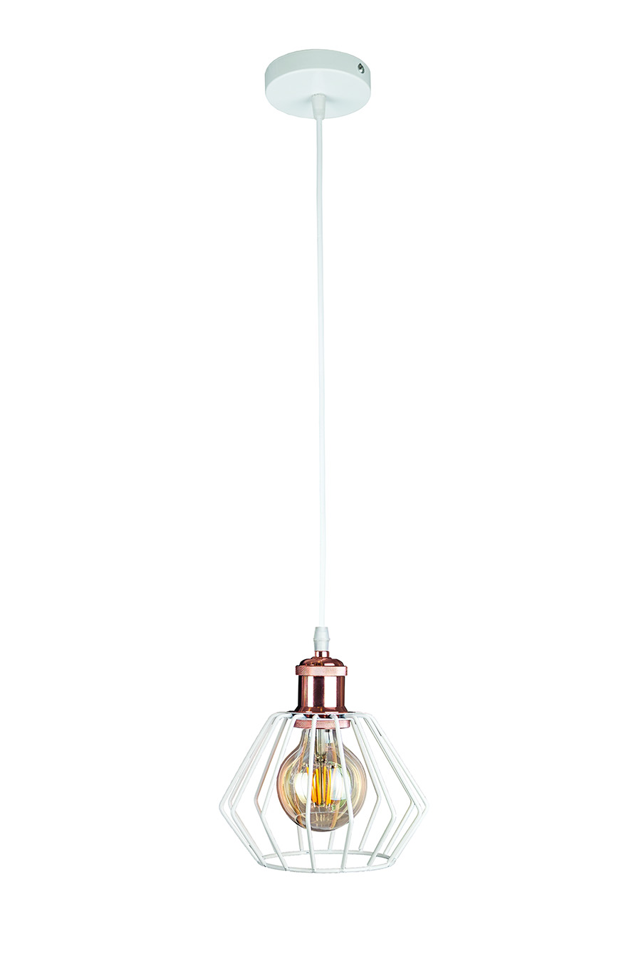 Підвіс в стилі лофт 756PR108F-1 WH+RG Матеріал люстри: метал Колір люстри: білий/рожеве золото Кількість плафонів - 1 Висота плафона - 135 мм Ширина плафона - 180 мм Тип кріплення - коло Кріплення до стелі колір - білий Матеріал кріплення - метал Джерело світла - 1 Е27 лампа Максимальна потужність лампочки 60 Ватт Можливість використання лампи: LED, розжарювання, енергозберігаюча Комплектація лампочками: Немає Тип люстри - підвісна