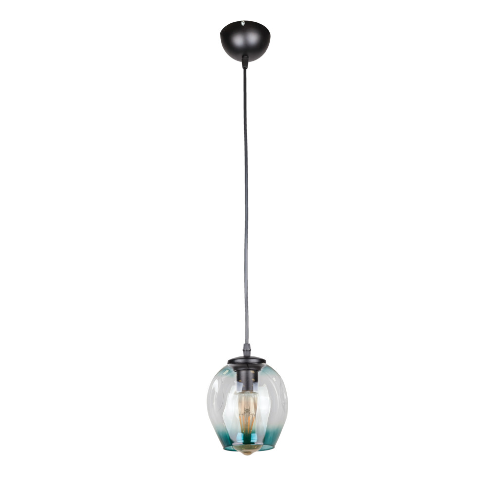 Підвіс Молекула 756PR0231F-1 BK+BL Матеріал - метал/скло, Колір - чорний+блакитний Кількість плафонів - 1 Розмір - 145x160мм Джерело світла - 1 лампа Е27 Максимальна потужність лампочки - 40 W Можливість використання лампи LED, світлодіодна енергозберігаюча.
