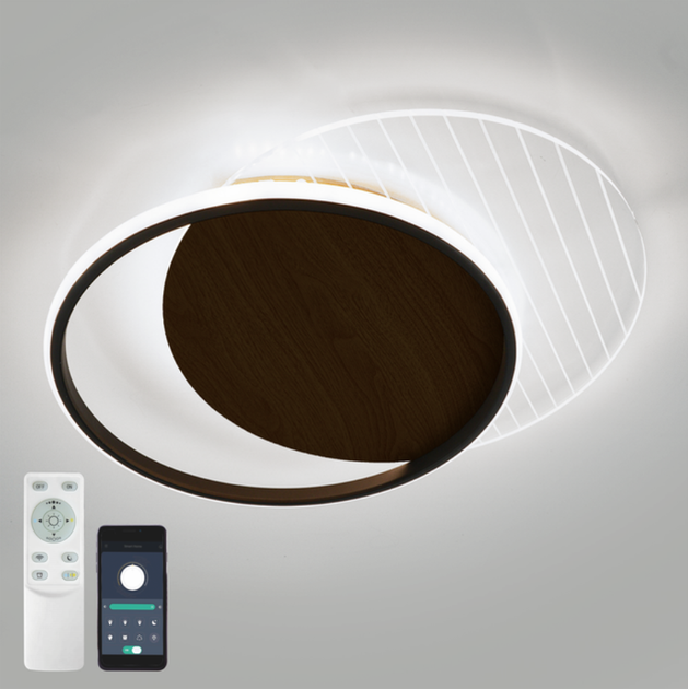 Керована світлодіодна люстра 10312 AMATO-60W-2R-APP-400*520*52-BLACK/WOOD/CLEAR-220-IP20