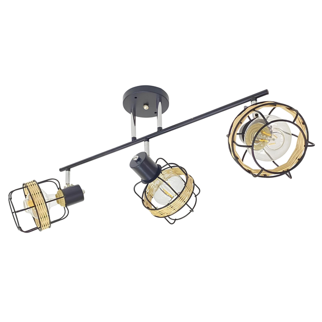 Стельовий світильник спот на 3 металеві плафони з ротангом під лампу Е27 каркас чорний/хром VALESO 91180K/3
