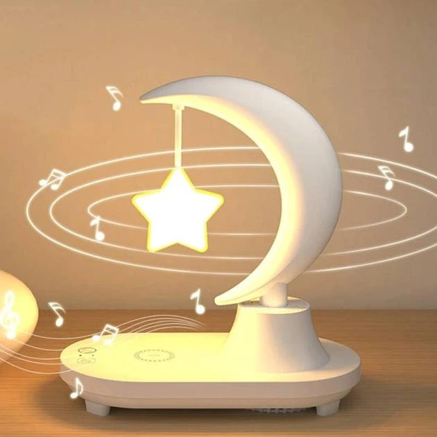 Настільний світильник-нічник Місяць із зіркою 3в1 RGB з бездротовою зарядкою для телефону та Bluetooth колонкою, смарт лампа
