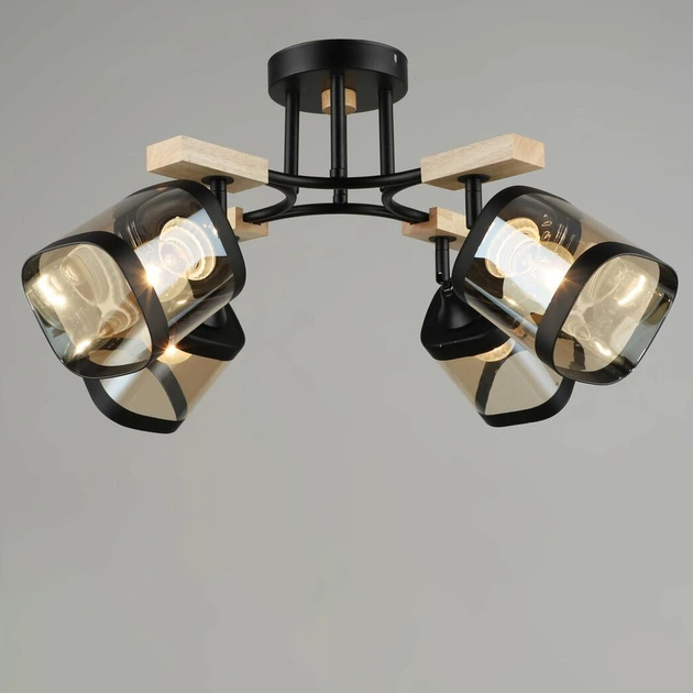 Люстра стельова Light House SRS-19545/4 BK+WOOD чорний + дерево, чорний плафон + янтарний
