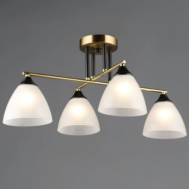 Стельова люстра Valeso A4410/4 з чотирма матовими скляними плафонами з візерунком під лампи E27 чорно-мідний корпус