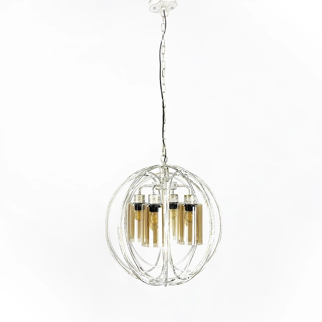 Люстра Лофт у білому із позолотою корпусі форми плетена сфера Line.F 12575/4