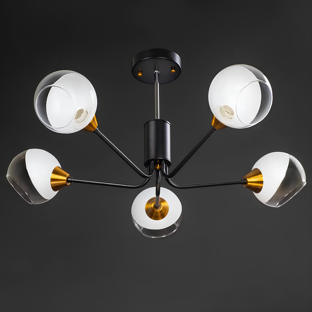 Люстра стельова в чорному кольорі з 5 скляними прозоро-білими плафонами Svet M-130-5 BK-FGD
