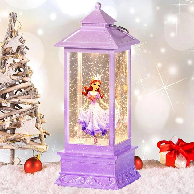 Нічник з ефектом снігу 27,5см, USB/батарейки, Фіолетовий / Новорічний світильник для малюків