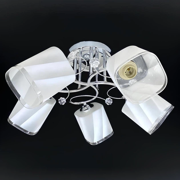 Стельова люстра на 5 білих плафонів під лампу Е27 корпус хромового кольору VALESO 6220L/5