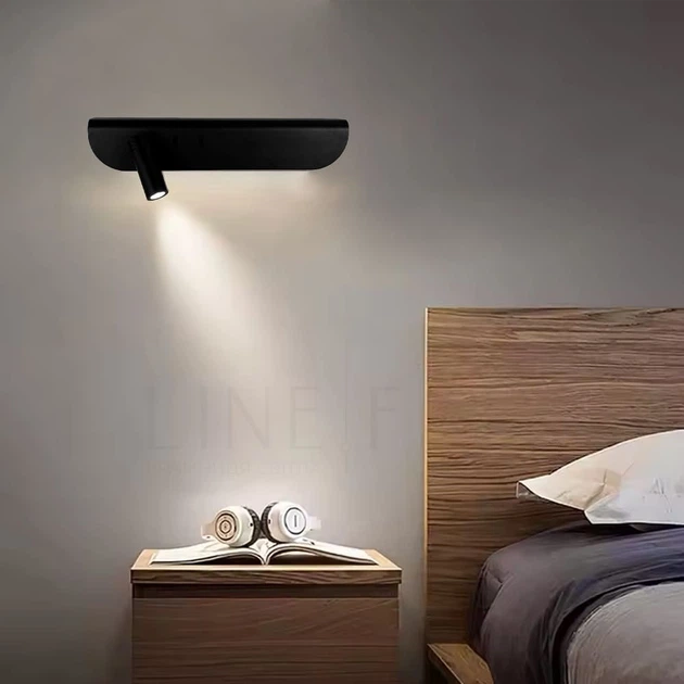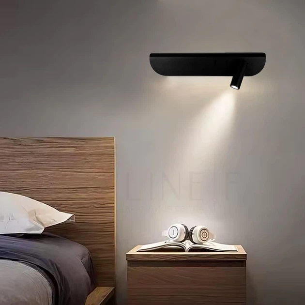 Бра ліве в чорному корпусі зі спотом та вимикачем 36х12 см | Line F | Арт. WJ029/2 L BK (лівий)