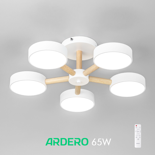 Люстра SCANDY 65Вт AL6195 ARD LED біла з деревом Ardero 3000-6500К 5200Lm керована світлодіодна з пультом ДУ 580х160мм