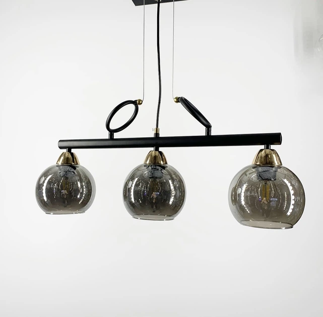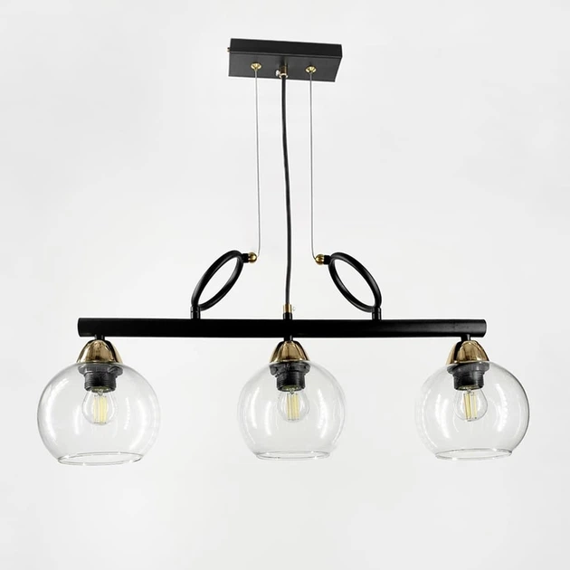 Подовжена люстра Лофт на 3 прозорі плафони | Line F | Арт. YQ307/3 AB+BK+CL