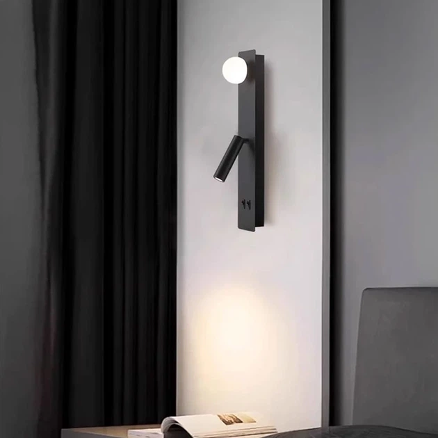 Чорне бра з білим плафоном та спотом на 2 вимикачі 40х8 см | Line F | Арт. B91/2 BK