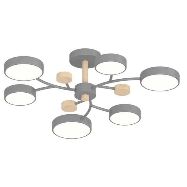 Стельова світлодіодна люстра 90W Interees без пульта д/у 3000K/4200K/6000K сіра IP20 XI3324-6 GR+WOOD