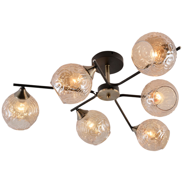 Люстра стельова VALESO з рельєфними плафонами під шість ламп Е27 бронзова/чорна IP20 V XA1488/6 BK+AB