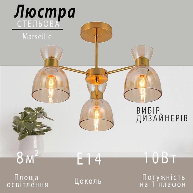 Люстра класична Ardero BL1230-2 Marseille на 3 плафони E14 золото (1230-2)