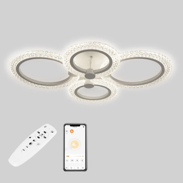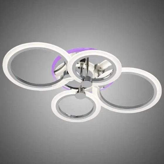 Люстра світлодіодна хромові круги з пультом керування та підсвічуванням для спальні, дитячої SL-5333/2+2 CR+RGB