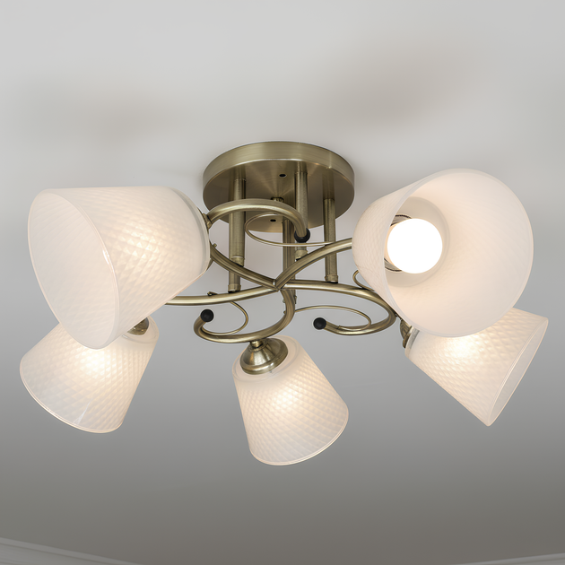 Стельова люстра VALESO 7051C/5 у класичному стилі з п'ятьма білими плафонами під лампи E27 на бронзовій основі
