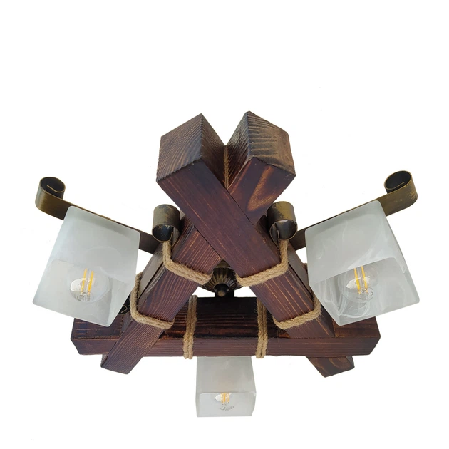 Люстра стельова дерев'яна Light House LPR-20116/3C колір коричневий + бронза, білий плафон