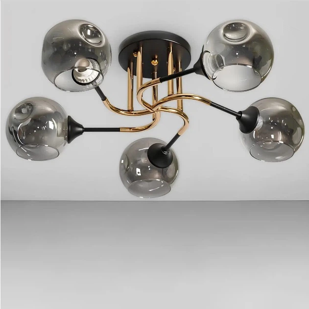 Стельова люстра на п'ять круглих плафонів під лампу Е27 корпус чорний+золото SC-9148/5 FG+BK
