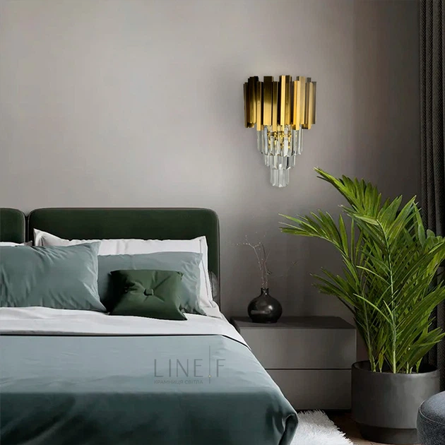 Кришталевий настінний світильник у золотому каркасі Line.F WS 152/2