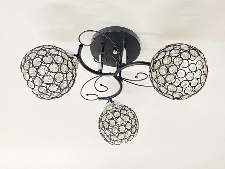 Люстра стельова на 3 плафони 2348C/3 Чорний+Хром