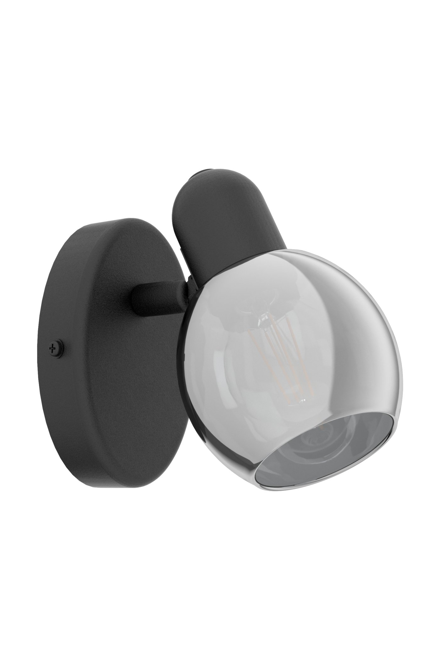 Бра / Настінний світильник EGLO 98624. Стиль: Бра і настінні у стилі лофт. Колір арматури: Чорний. Колір плафонів та підвісок: Чорний, Прозорий. Матеріал плафонів та підвісок: Скло. Матеріал арматури: Сталь.
