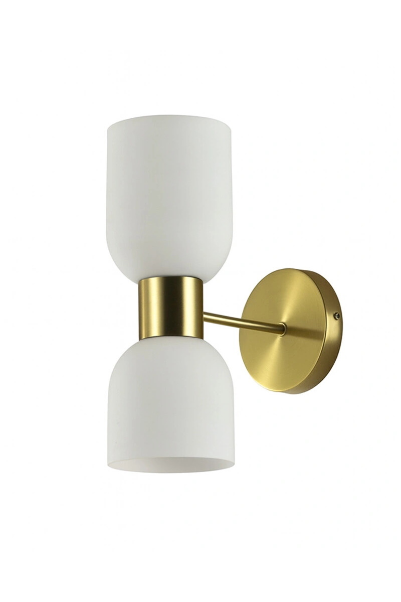 Бра / Настінний світильник EDLIN PL321155W-2. Стиль: Бра і настінні у стилі модерн. Колір арматури: Латунь. Колір плафонів та підвісок: Білий. Матеріал плафонів та підвісок: Скло. Матеріал арматури: Метал.