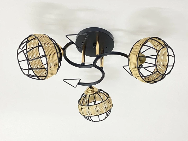 Стельовий спот VALESO 91180J/3 з трьома поворотними плафонами з металу та ротанга під лампи Е27 на бронзовому каркасі