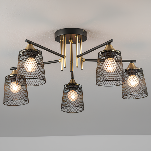 Стельова люстра Valeso B A4437/5 BK+COP на 5 металевих плафонів під лампи E27 з чорно-мідним металевим каркасом