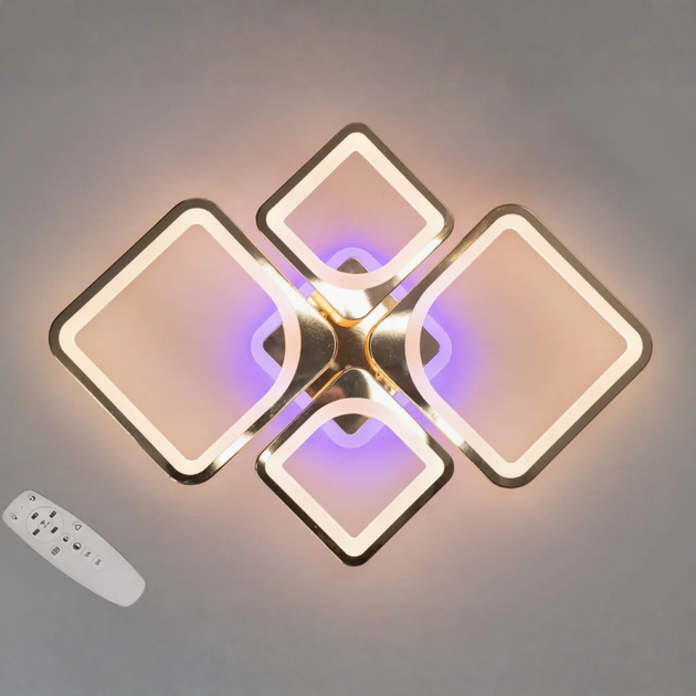 Стельова світлодіодна люстра 80W з пультом Diasha з підсвічуванням корпусу 3200-6500К золота IP20