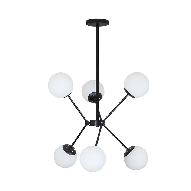 Стельова люстра Levistella на шість скляних плафонів під лампу Е27 чорна IP20 7529810-6 BK+WH