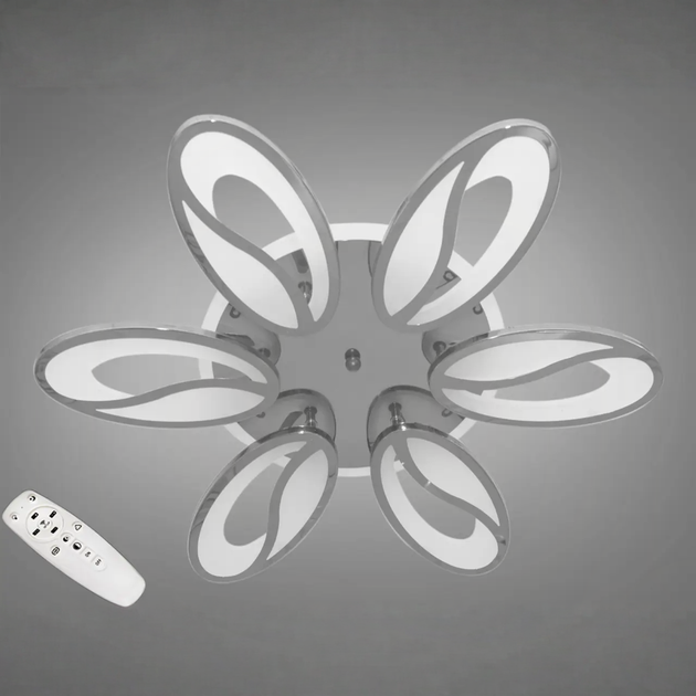 Стельова світлодіодна люстра 105W з пультом Diasha на шість акрилових розсіювачів 3200K-6000K хром IP20