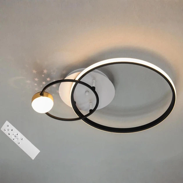 Стельова світлодіодна люстра 35W з пультом Diasha з розсіювачами-кільцями 3200-6500К чорна/біла IP20