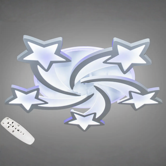 Стельова світлодіодна люстра 85W з пультом Diasha з розсіювачами у формі зірок 3200К-6000К біла IP20