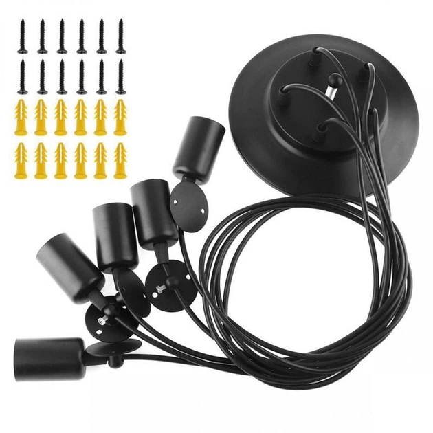 Урожай 5 головна люстра Стельовий світильник для вітальні Ресторан Домашнє освітлення Чорний