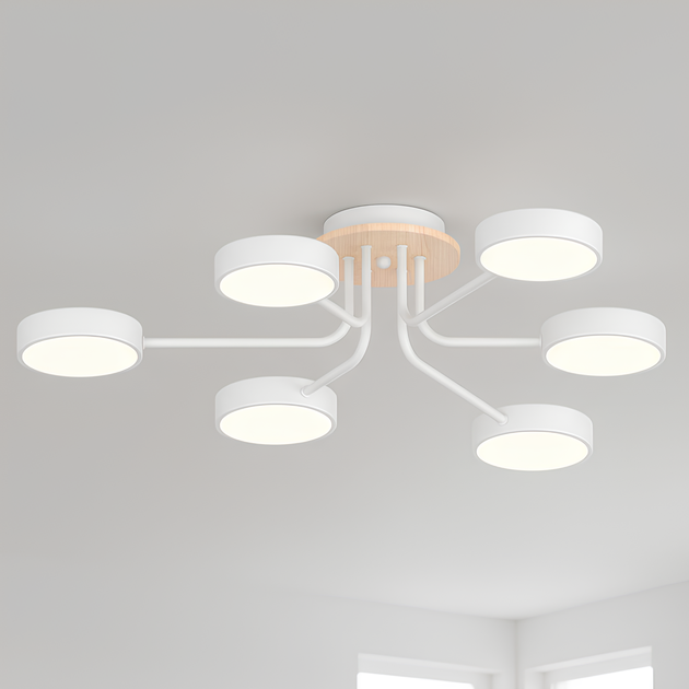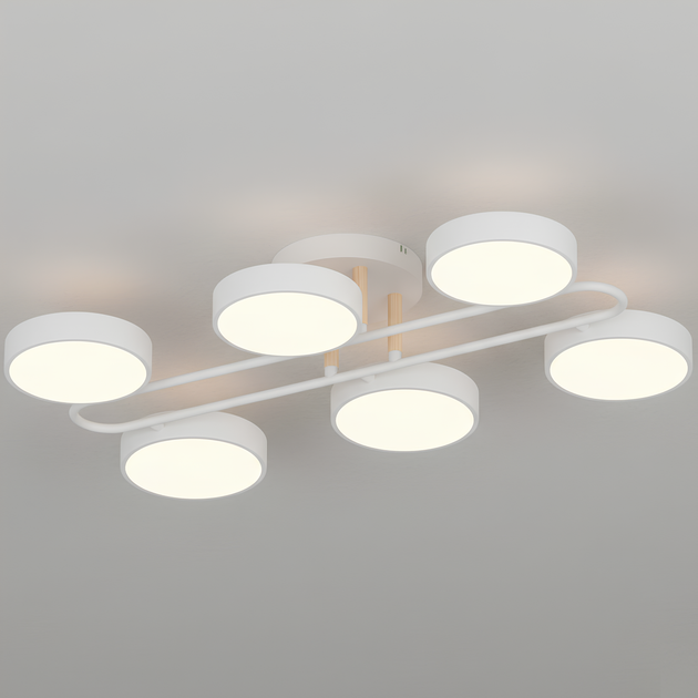 Стельова люстра світлодіодна 72W Valeso XI3333-6 на шість круглих плафонів 3000/4200/6000K біла з елементами дерева