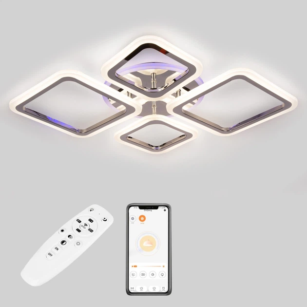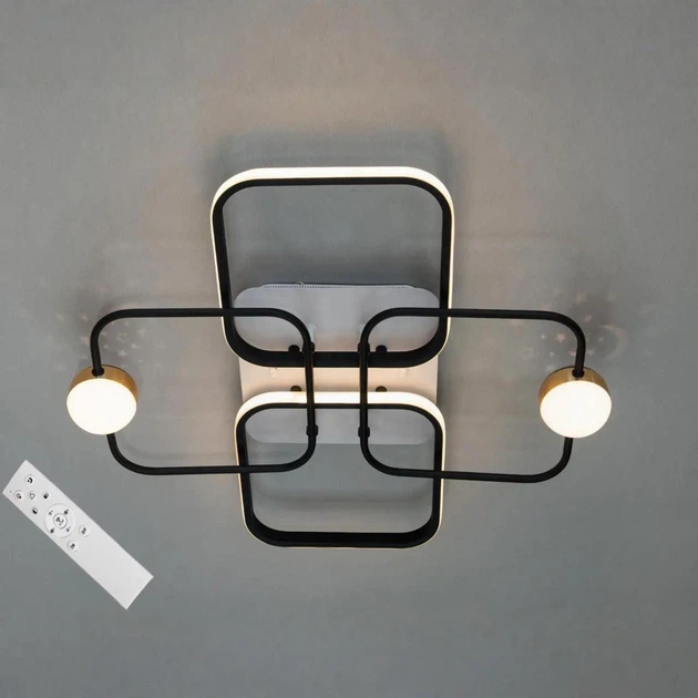 Стельова світлодіодна люстра 55W з пультом Diasha з квадратними плафонами 3200-6500К чорна/біла IP20