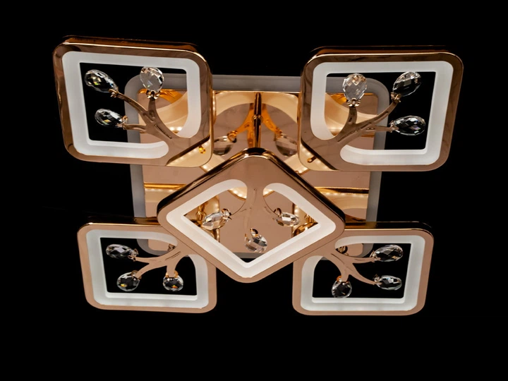 Стельова світлодіодна люстра 90W з пультом Diasha на п'ять акрилових розсіювачів 3200К-6000К золота IP20