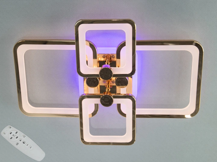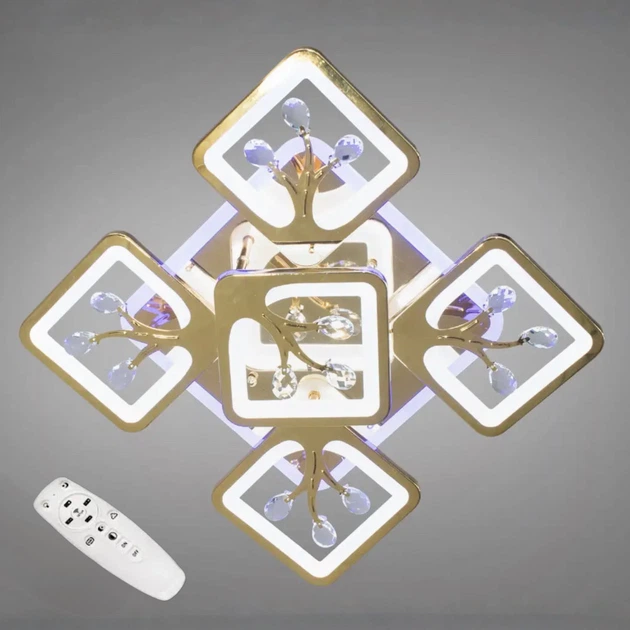 Стельова світлодіодна люстра 70W з пультом Diasha з квадратними плафонами 3200-6500K золота IP20