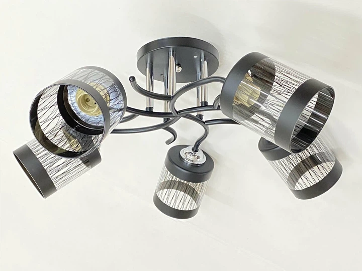 Стельова Люстра на 5 плафонів Valeso 6979A/5 (Чорний+Хром)