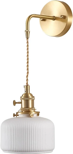 Керамічний настінний світильник aste з ребристим дротяним вимикачем, скандинавська латунь, білий світлодіодний настінний сві