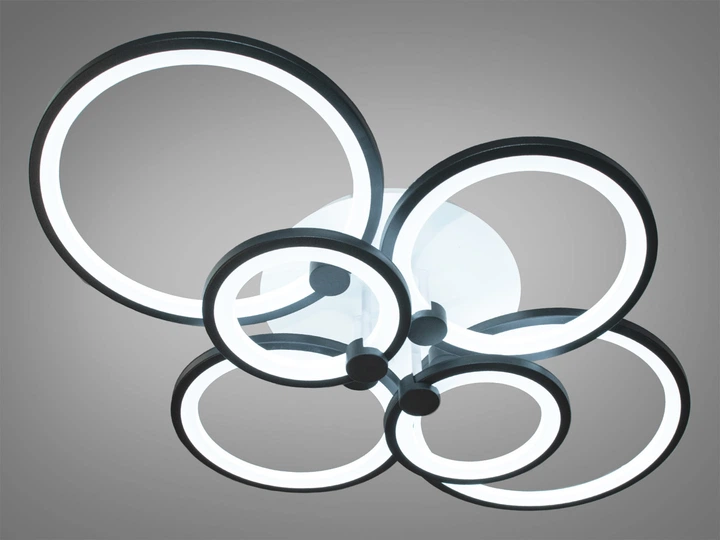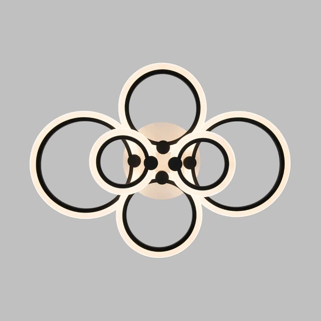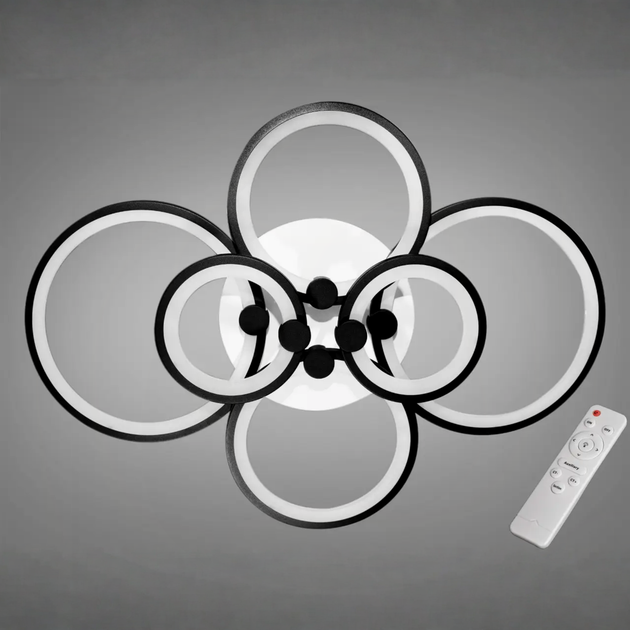 Стельова світлодіодна люстра 110W з пультом Diasha з розсіювачами-кільцями 3200K-6500K чорна IP20