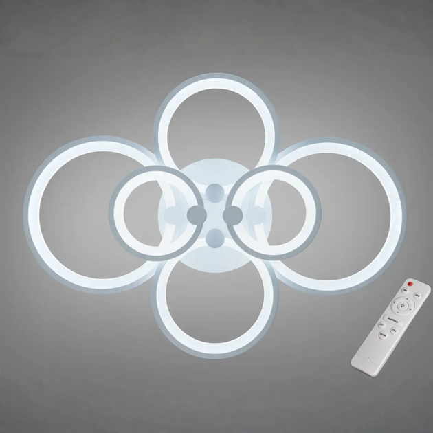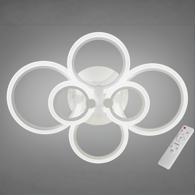 Стельова світлодіодна люстра 110W з пультом Diasha на шість круглих розсіювачів 3200К-6500К біла IP20