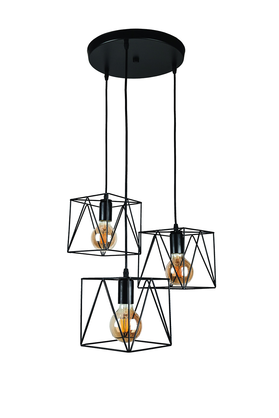 Підвіс в стилі лофт 756PR103F-3 BK (300) Матеріал люстри: метал Колір люстри: чорний Кількість плафонів - 3 Висота плафона - 160 мм Ширина плафона - 160 мм Тип кріплення - коло Кріплення до стелі колір - чорний Матеріал кріплення - метал Джерело світла - 3 лампи Е27 Максимальна потужність лампочки 60 Ватт Можливість використання лампи: LED, розжарювання, енергозберігаюча Комплектація лампочками: Немає Тип люстри - підвісна