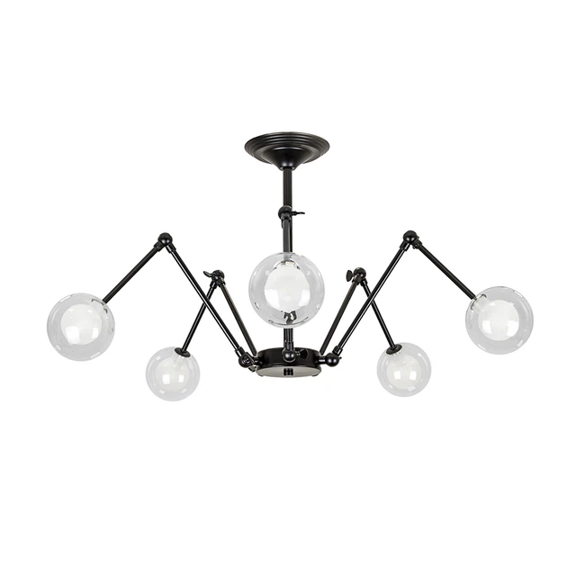 Люстра павук стельова Light House LS-19515-5 BK+CLWH чорна, прозорий плафон + білий
