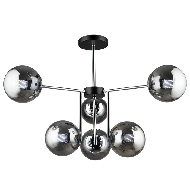 Люстра стельова Valeso K2307/6 на шість чорних плафонів-сфер під лампи E27 корпус у поєднанні чорного та хромового кольорів